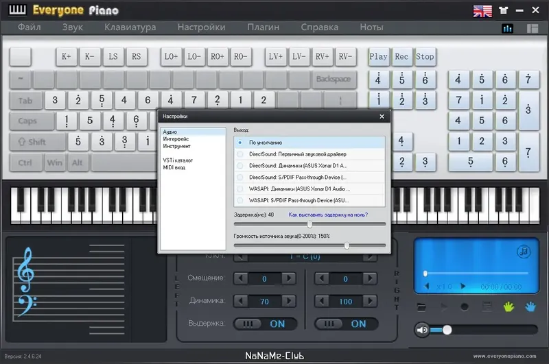 Everyone Piano — это универсальный графический редактор виртуального пиано, который позволяет играть и записывать музыку прямо на компьютере. В программе реализована поддержка клавиатуры, что делает её удобной для быстрого освоения и практики, а подключение внешних MIDI-клавишных расширяет возможности для профессиональных музыкантов. Благодаря встроенной системе плагинов, пользователь может дополнительно расширять функционал, добавляя новые звуки, эффекты и инструменты.