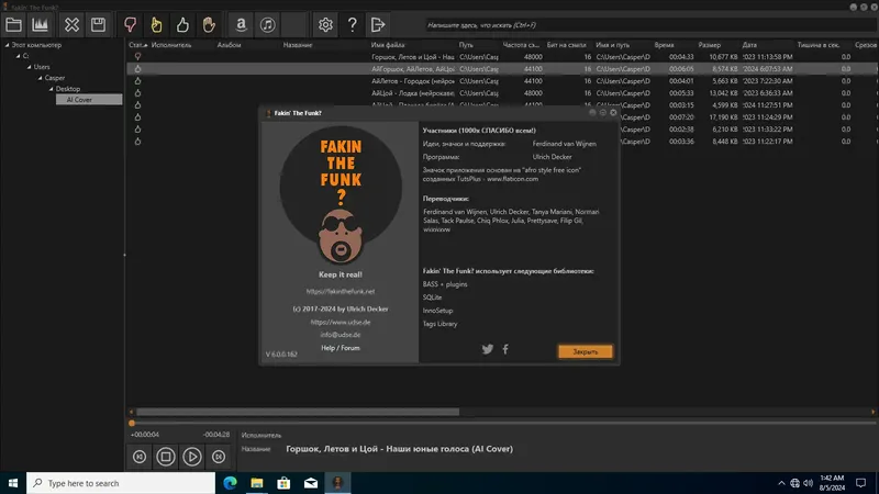 Fakin The Funk — это удобный редактор и анализатор музыкальных файлов, который помогает выявлять качество треков и избегать пережатых или низкокачественных записей. Он позволяет импортировать множество файлов одновременно и быстро получать информацию о их битрейте и частоте. Это особенно важно для музыкантов, диджеев и любителей, стремящихся к максимально чистому звучанию своих коллекций. Простота использования и высокая точность делают эту программу незаменимым инструментом в сфере аудиообработки и медиаконтроля.