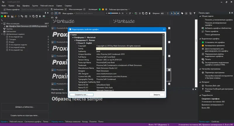 - Управление коллекциями шрифтов, группировка и каталогизация.