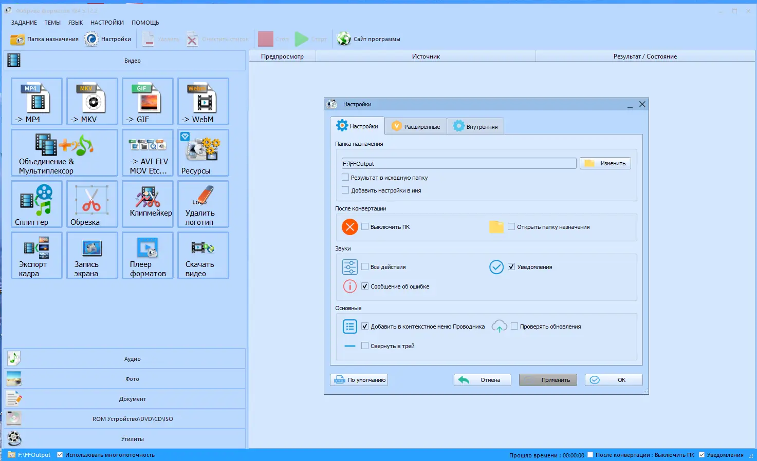 Format Factory — многофункциональный конвертер мультимедийных файлов, который позволяет быстро и качественно преобразовывать видео, аудио, изображения и документы. Эта программа подходит для пользователей, ищущих бесплатное решение для работы с различными форматами файлов на Windows. Благодаря широкому набору функций, Format Factory является универсальным инструментом для обработки мультимедийных данных разных типов и предназначен для упрощения задач по конвертации, восстановлению и редактированию файлов.