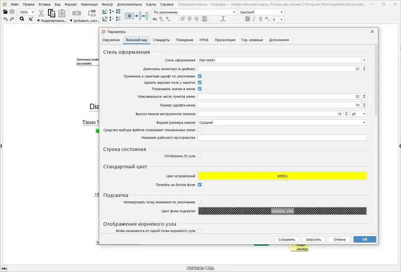 - Создание и редактирование ментальных карт с помощью шаблонов и настроек