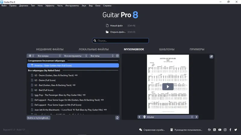 Guitar Pro — это универсальный редактор, который позволяет создавать и редактировать музыкальные партитуры с высокой точностью и удобством. Он позволяет работать с гитарными, басовыми, а также гавайскими гитарами, а также создавать минусовки для ударных и фортепиано. В новой версии Guitar Pro 8 реализованы расширенные возможности, такие как добавление аудиодорожек, эмуляция гитарных педалей и улучшенные инструменты для практики. Этот софт отлично подходит как для профессиональных музыкантов, так и для любителей, желающих развивать свои навыки и создавать качественные композиции.