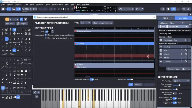 Guitar Pro — мощный инструмент для музыкантов, объединяющий нотный редактор и мультимедийные функции.