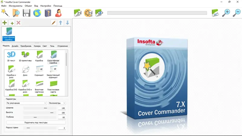 Insofta Cover Commander — это универсальный редактор для создания 3D-картинок упаковки и виртуальных коробок. Он позволяет моделировать DVD-коробки, книжные обложки, визитки, буклеты, ноутбуки, смартфоны, планшеты и другие виды продукции. В программе реализована возможность быстрого получения изображений с эффектами освещения, теней и отражений, что обеспечивает реалистичный вид конечного результата. Интуитивно понятный интерфейс и автоматизированные мастер-проекты делают процесс дизайна максимально простым и быстрым, а встроенные шаблоны помогают сэкономить время.