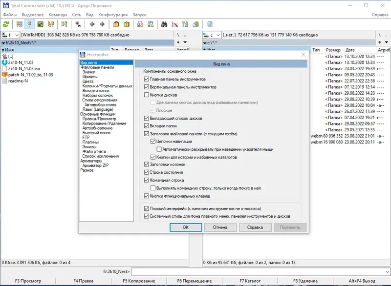 - Гибкая настройка интерфейса и управление горячими клавишами