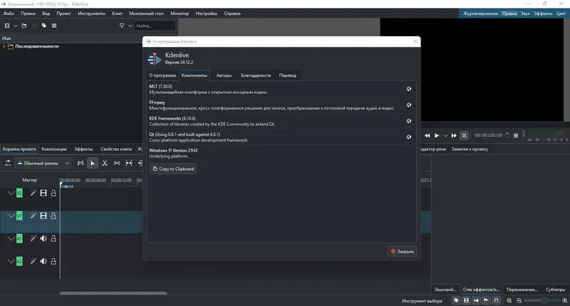 Kdenlive — это бесплатный нелинейный видеоредактор, который отлично подходит как для начинающих, так и для профессионалов. Программа поддерживает широкий спектр форматов, позволяет создавать качественное видео и легко реализовать любые идеи. Благодаря богатому функционалу и простому интерфейсу, скачать видеоредактор можно бесплатно и быстро начать редактировать видео на русском языке. Поддержка различных стандартов, таких как HD, HDV и AVCHD, делает Kdenlive универсальным инструментом для работы с видео в различных условиях и проектах.