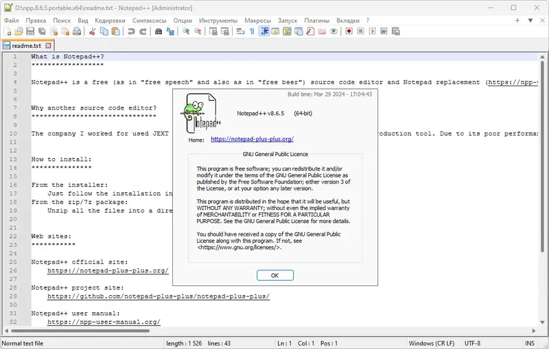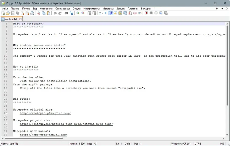 Notepad++ — это универсальный инструмент для разработки и редактирования текста, сочетающий простоту и мощь профессионального редактора.