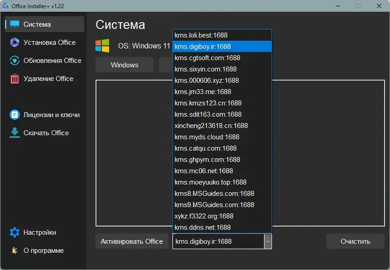 - Возможность активации Office через встроенный KMS-сервис