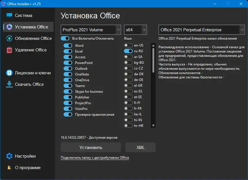 Office Installer — это надежное решение для автоматической установки и управления офисными продуктами microsoft, которое можно легко скачать на странице. Вы получите универсальный инструмент, способный значительно упростить процесс развертывания Office в любой среде. Программа подходит для системных администраторов и пользователей, желающих иметь полный контроль над установками и лицензиями.