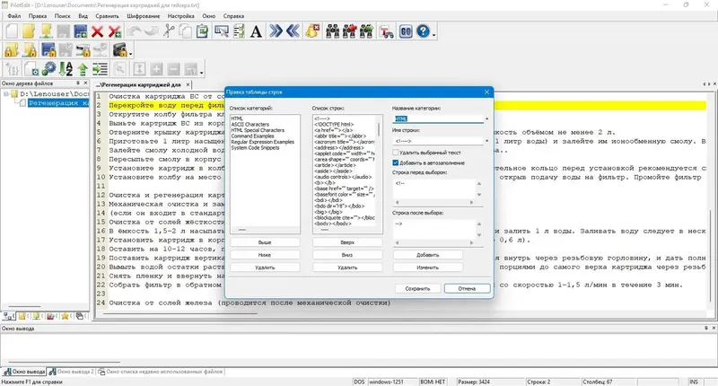 Для начала работы с PilotEdit Lite достаточно запустить программу и открыть интересующий файл через меню или перетащить его в окно редактора. После загрузки файла можно использовать встроенные инструменты для поиска, замены, сравнения и объединения данных. При необходимости работы с бинарными файлами активируется режим HEX, который позволяет выполнять операции с байтами. Для сравнения файлов используйте функцию сравнения и объединения, а также настройте автоматическое обновление результатов. Работа с кодировками осуществляется автоматически или вручную, что позволяет легко переключаться между форматами. Программа также поддерживает работу с удаленными файлами через FTP/SFTP, что делает её удобной для обработки данных на серверных ресурсах.
