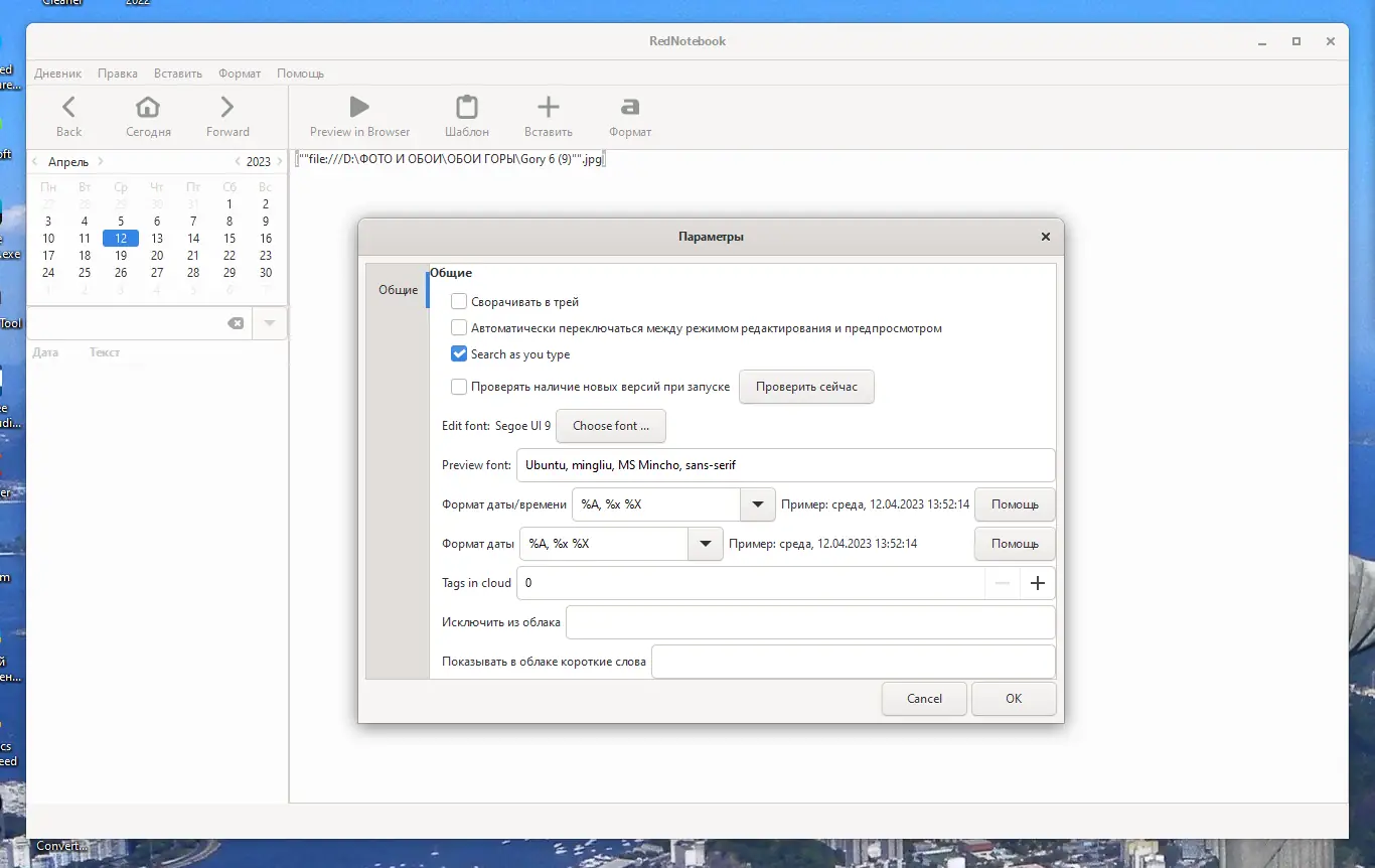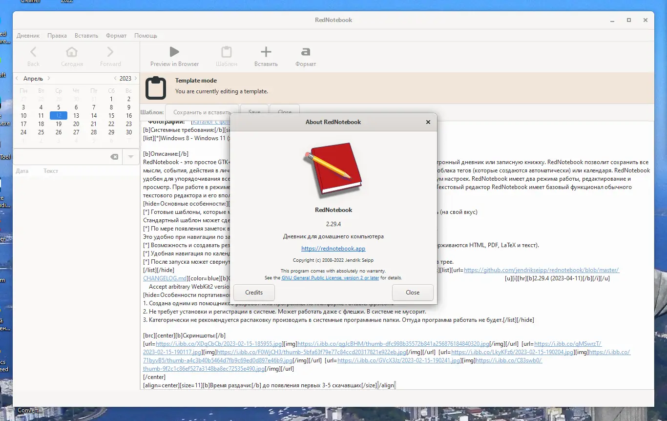 RedNotebook — это удобное и простое приложение для ведения личного дневника или записной книжки, созданное на базе GTK+ / Gnome и написанное на языке Python. Оно позволяет сохранять мысли, события, идеи и заметки в структурированном формате, обеспечивая быстрый доступ к любой записи с помощью облака тегов и календаря. Это программное обеспечение идеально подходит для тех, кто ищет легкое решение для организации ежедневных записей и личных напоминаний.