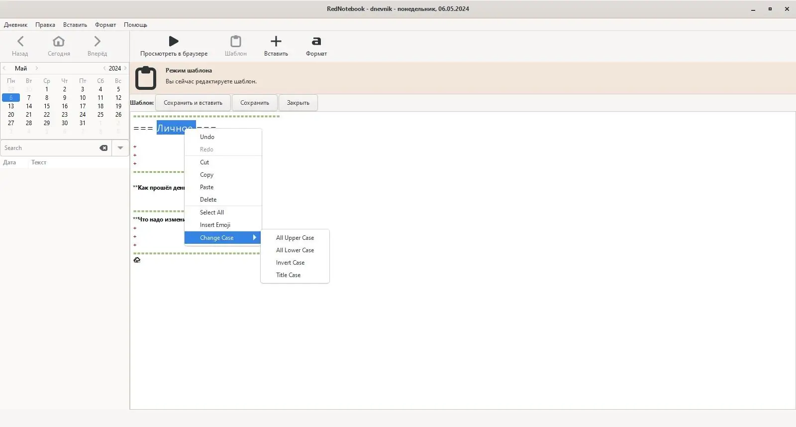 RedNotebook — это универсальный инструмент для личного ведения дневника и организации информации.