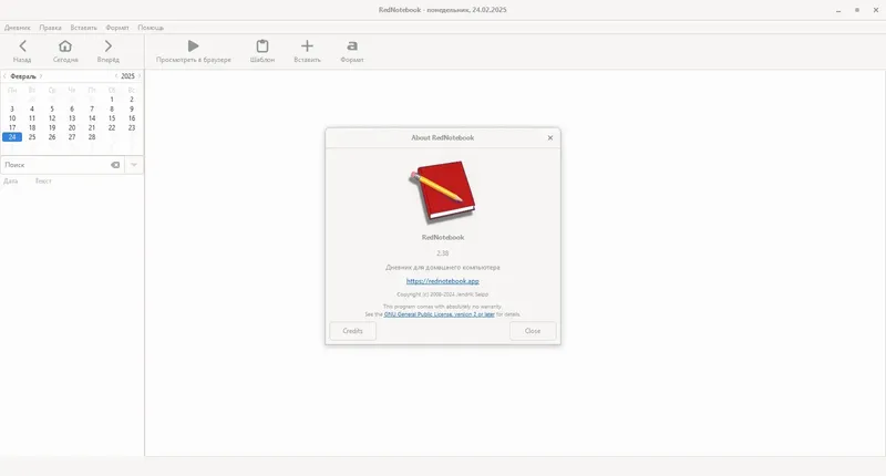 RedNotebook представляет собой легкий, но мощный редактор для ведения личных дневников и заметок. Он написан на Python с использованием GTK+ / Gnome интерфейса, что обеспечивает стабильную работу на системах Linux и других платформах. Программа отличается простотой настройки, отсутствием сложных опций и наличием всех необходимых инструментов для быстрого создания и поиска записей. Ее можно использовать как ежедневник, заметочник или для хранения важной информации в структурированном виде. Встроенные шаблоны и возможность вставки изображений делают ведение дневника максимально гибким и удобным.