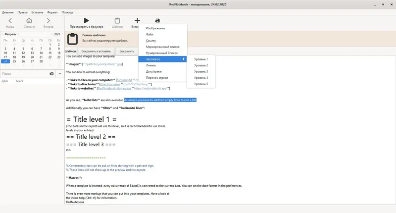 RedNotebook — это удобный и функциональный электронный дневник, который позволяет сохранять личные заметки, события и мысли в структурированном виде. Простое в использовании приложение с минималистичным интерфейсом подходит для ведения дневника, планирования и организации информации. Благодаря автоматическому созданию облака тегов и интегрированному календарю, поиск нужной записи занимает всего несколько секунд, что делает работу максимально комфортной.
