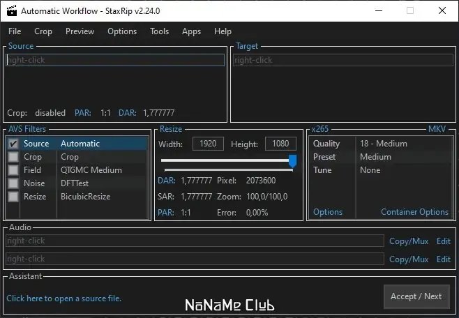 StaxRip — это универсальный редактор для кодирования видео, который объединяет множество функций в одном инструменте. Он подходит для преобразования различных видеоформатов, таких как Blu-ray, DVD и DVB, в популярные кодеки и контейнеры, обеспечивая высокое качество конечного файла. Благодаря широкому набору поддерживаемых форматов и встроенным возможностям аппаратного ускорения, программа подходит как для профессиональных видеооператоров, так и для любителей, желающих самостоятельно обрабатывать видео. В дополнение к стандартным функциям, StaxRip предлагает автоматическую обработку, пакетную работу и множество настроек, что делает его мощным и гибким решением для кодирования видео.