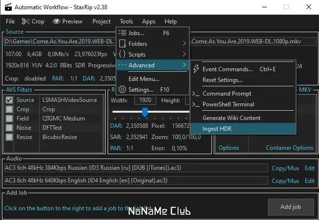 StaxRip — это мощное решение для профессионального и любительского кодирования видео, которое можно скачать на официальной странице. Программа обладает всеми необходимыми инструментами для качественной обработки и преобразования видеофайлов в различные форматы. Благодаря широкому набору настроек и автоматических режимов, она подходит для решения самых разнообразных задач по сжатию и оптимизации видео.