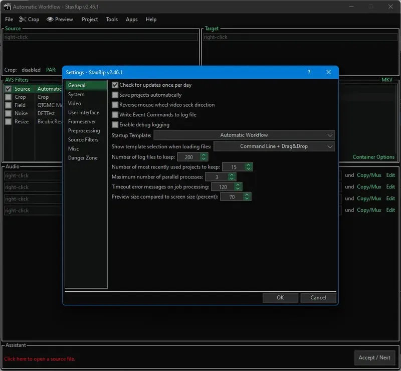 StaxRip позволяет легко и быстро осуществлять высококачественное кодирование видео с расширенными настройками и возможностями автоматизации.