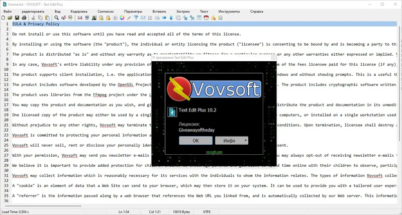 Для тех, кто ищет удобный и функциональный текстовый редактор, Text Edit Plus доступен для скачивания прямо сейчас. Установите программу, активируйте лицензионный ключ и начните работу с текстами без лишних сложностей. Программа идеально подходит для редактирования кода, подготовки документов или анализа текстовых данных, что делает её универсальным инструментом в сфере программирования и обработки информации.