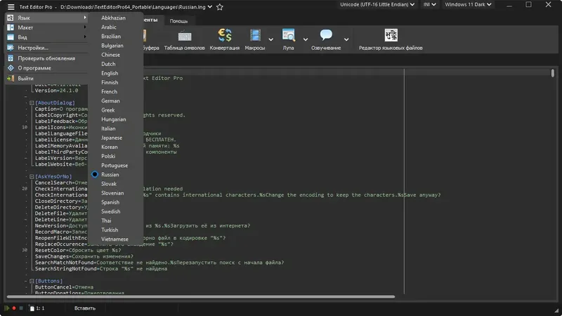 - Настраиваемый интерфейс с богатым выбором скинов и тем оформления, а также таблица символов юникода и инструменты для работы с кодировками.
