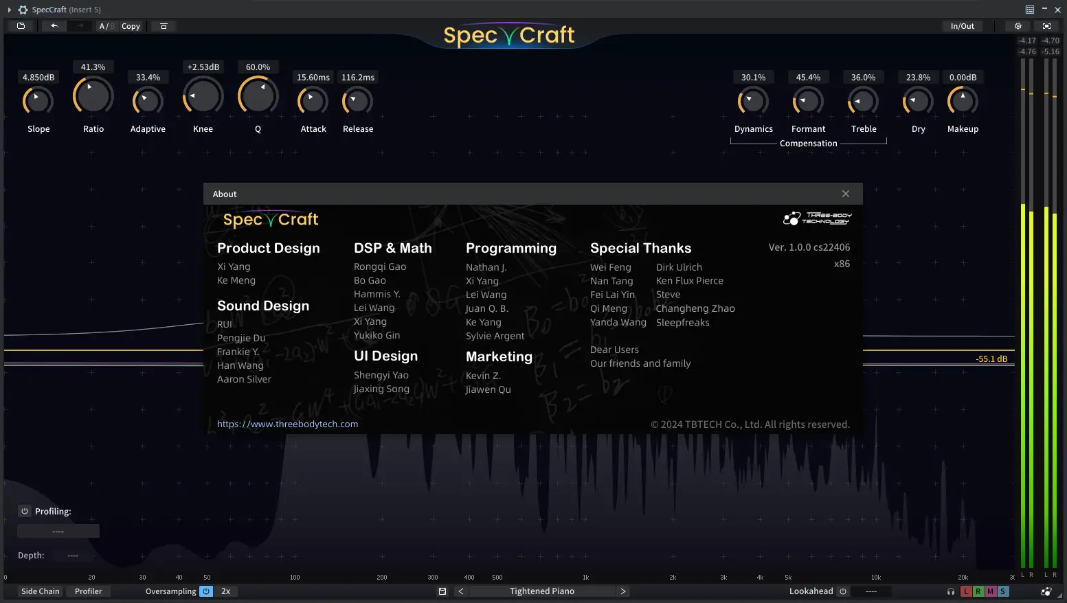 Three Body Tech — SpecCraft представляет собой мощный инструмент для профессионального микширования и обработки звука, сочетающий в себе спектральный компрессор, интеллектуальный эквалайзер и подавитель резонансов. Эта программа предназначена для устранения нежелательных резонансов, которые могут мешать созданию чистого и сбалансированного микса, обеспечивая высокое качество звукового результата и удобство работы для аудиомонтажеров и звукорежиссеров.