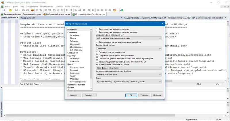 WinMerge является open source программой, предназначенной для сравнения и слияния текстовых файлов и папок на операционной системе Windows. Она поддерживает различные форматы файлов, включая Windows, Unix и Mac, а также обеспечивает работу с Unicode, что особенно важно при работе с многоязычными проектами. Программа обладает интуитивно понятным интерфейсом с закладками, визуальной подсветкой изменений и возможностью редактирования файлов прямо в окне сравнения. Благодаря поддержке регулярных выражений и фильтров, пользователь может точно настраивать процесс выбора файлов и папок для сравнения.