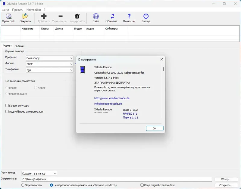 XMedia Recode — универсальный редактор и конвертер видео, предназначенный для преобразования различных форматов файлов в совместимый для мобильных устройств, плееров и игровых приставок. Эта программа обладает дружественным интерфейсом и широкими возможностями по редактированию и настройке видео, что делает ее популярным инструментом среди пользователей, ищущих надежное решение для кодирования. Благодаря поддержке множества форматов и функций, XMedia Recode позволяет легко изменить размер кадра, обрезать видео по времени, а также выполнять другие операции, необходимые для получения качественного конечного файла.