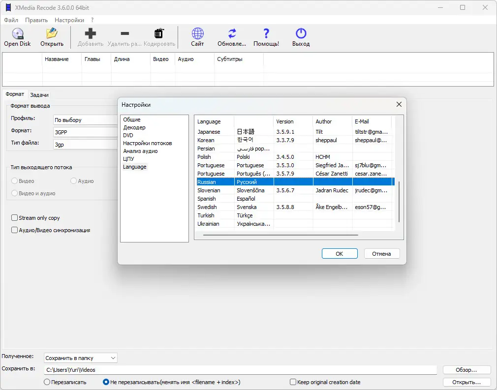 | Разработчик: | Fabrice Bellard, разработчики проекта XMedia Recode |