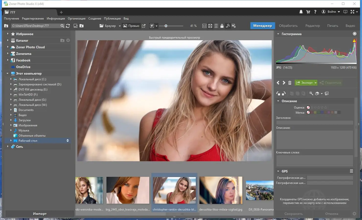 - Поддержка всех популярных форматов изображений и RAW-файлов