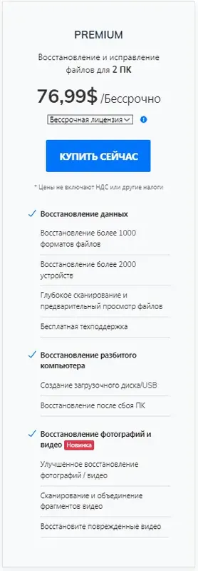 - Более 500 сценариев восстановления, включая случайное удаление, форматирование, повреждение устройства и вирусные атаки