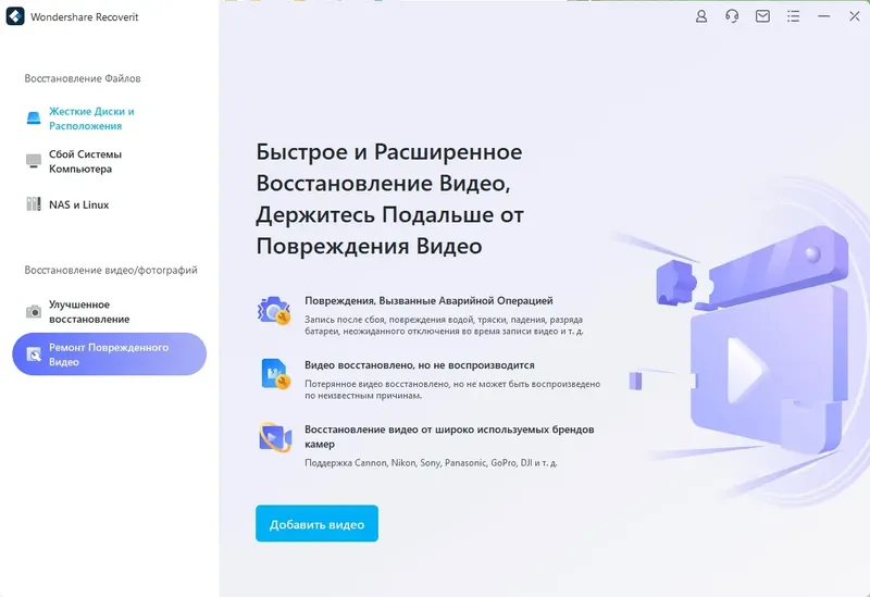 - Восстановление поврежденных видео и фото в HD и 4K качестве