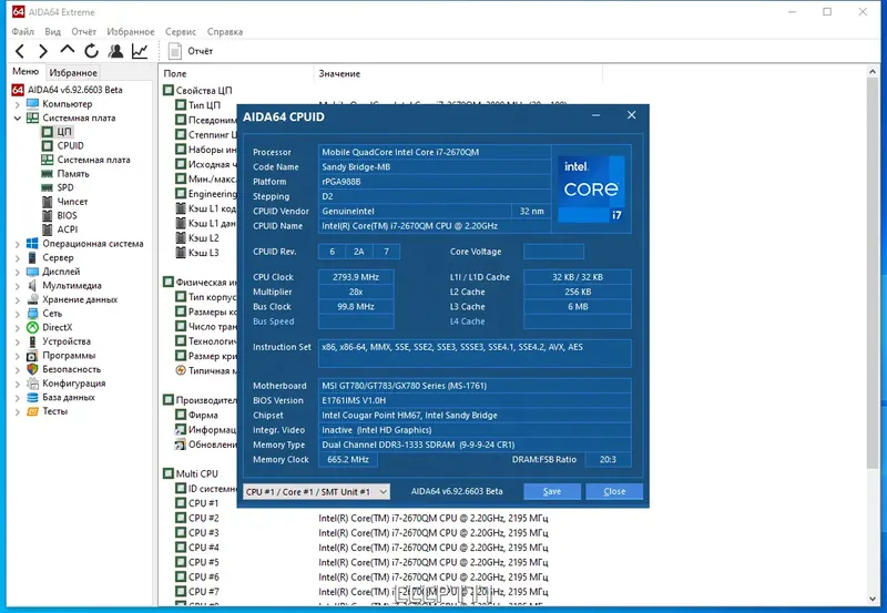 - Обширная информация о центральном процессоре и материнской плате