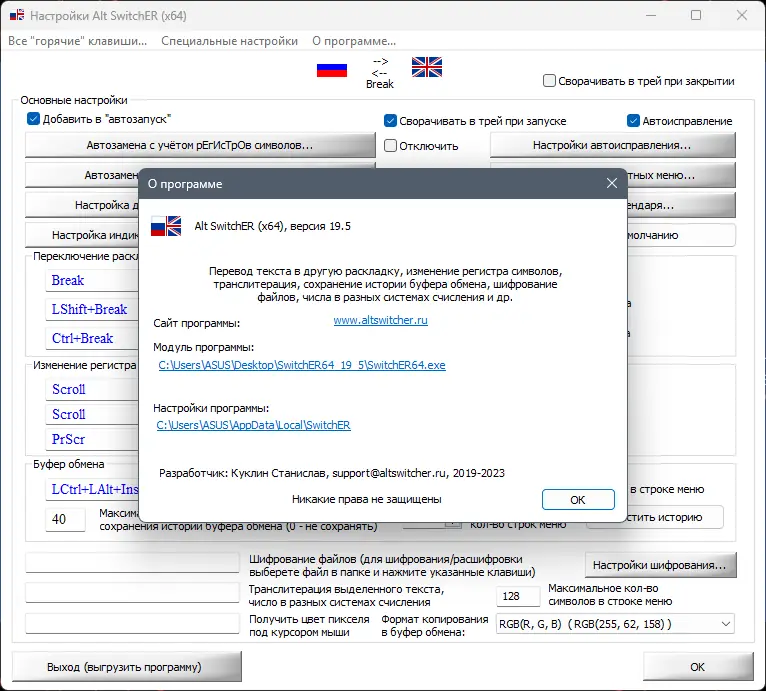 Alt SwitchER — это мощная и универсальная системная утилита, предназначенная для автоматической корректировки раскладки клавиатуры, а также выполнения различных вспомогательных функций. Она идеально подходит для пользователей, которым необходим быстрый и надежный инструмент для работы с текстом и управлением окнами в операционной системе Windows. Программа обладает богатым функционалом, гибкими настройками и возможностью использования в любых приложениях и редакторах.