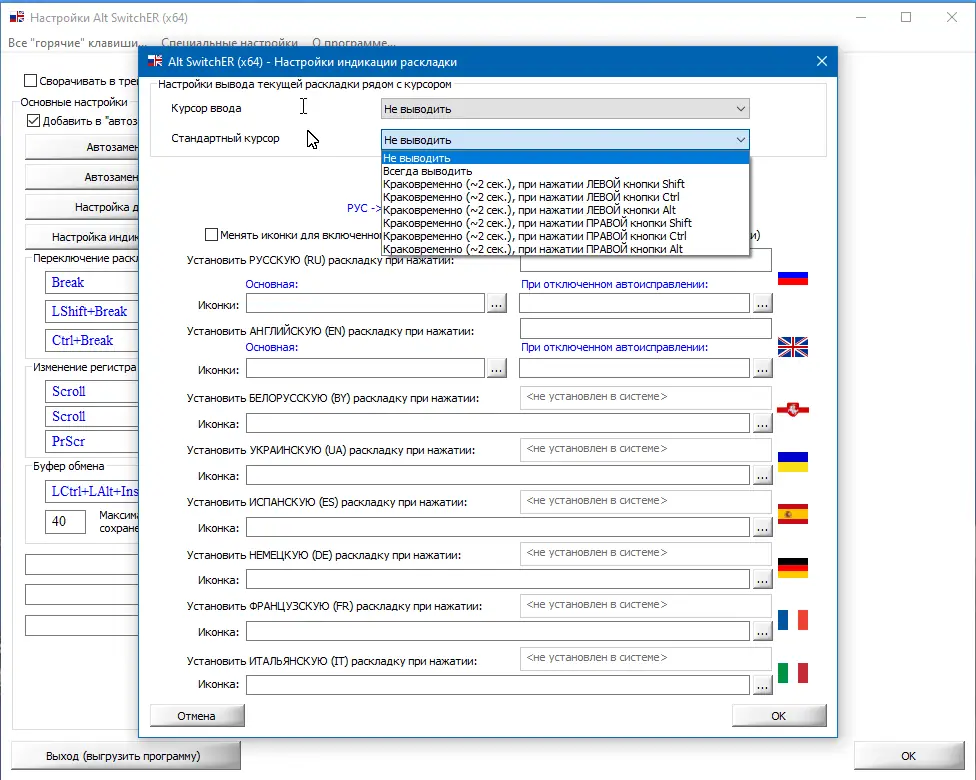 Alt Switcher представляет собой универсальный инструмент для автоматической и ручной корректировки раскладки клавиатуры, а также для выполнения различных операций с текстом и файлами. В отличие от аналогичных программ, таких как Punto Switcher или Caramba Switcher, Alt Switcher не нуждается в установке и не ведет логов, что делает его безопасным и легким в использовании. Программа поддерживает автообучение, позволяет настраивать горячие клавиши, шифровать файлы и папки, а также выводить информацию о цвете под курсором мыши. Она идеально подходит для пользователей, работающих в любых редакторах, IDE, офисных приложениях и других окнах Windows.
