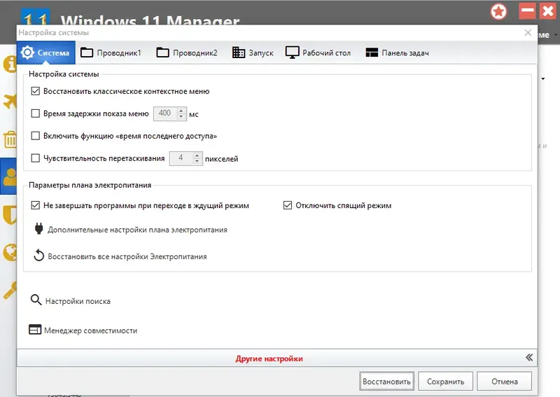- Создание и восстановление резервных копий системы и данных