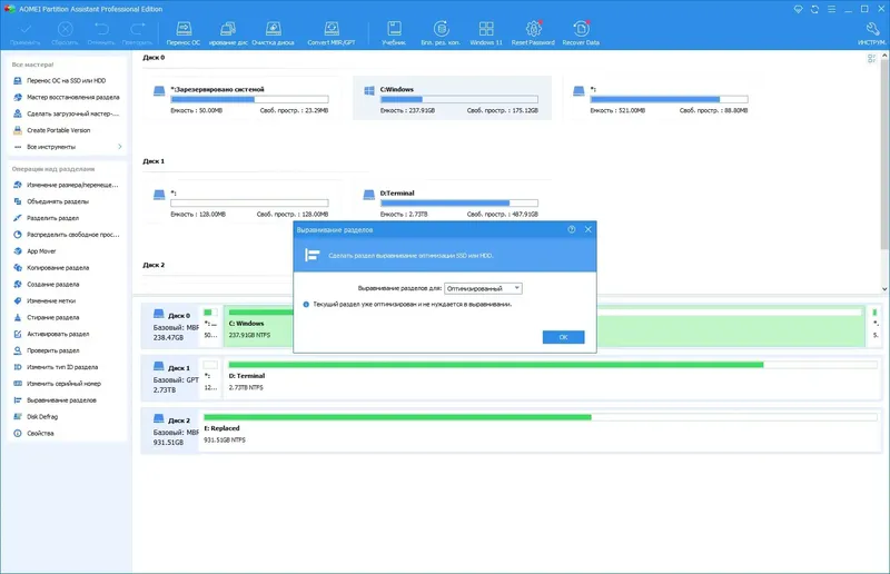 AOMEI Partition Assistant Pro — это мощная система утилит для работы с жестким диском, которая позволяет создавать, изменять, форматировать и восстанавливать разделы без потери данных. Программа подходит для управления HDD, SSD, флэш-накопителями и RAID-массивами, поддерживая оба типа разделов — MBR и GPT. Ее интуитивный интерфейс и пошаговые инструкции делают работу с разделами максимально простой и безопасной, что особенно важно для пользователей, желающих оптимизировать работу своих устройств хранения данных.