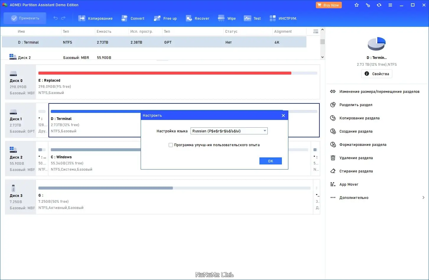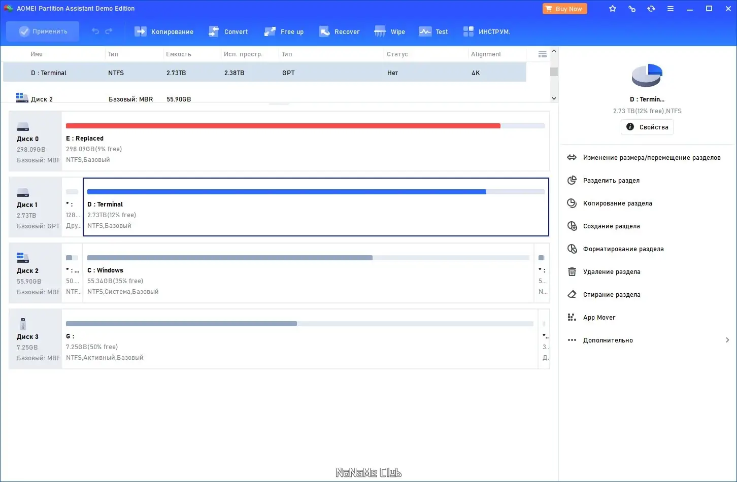 AOMEI Partition Assistant Standard Edition — это бесплатный инструмент для системных администраторов и пользователей, позволяющий управлять разделами жестких дисков с высокой точностью и безопасностью. Программа поддерживает работу с различными типами разделов, включая NTFS и FAT, а также предоставляет возможность расширять системные разделы без перезагрузки компьютера. Ее функционал включает создание, удаление, форматирование, скрытие и конвертацию разделов, что значительно упрощает обслуживание дисковой подсистемы. Программа отлично подходит для решения задач по оптимизации дискового пространства и повышению производительности системы. Возможность выполнения операций с разделами без потери данных делает ее незаменимым инструментом для пользователей, желающих обеспечить надежную работу своего ПК.