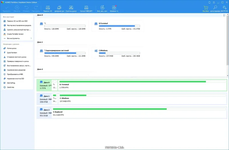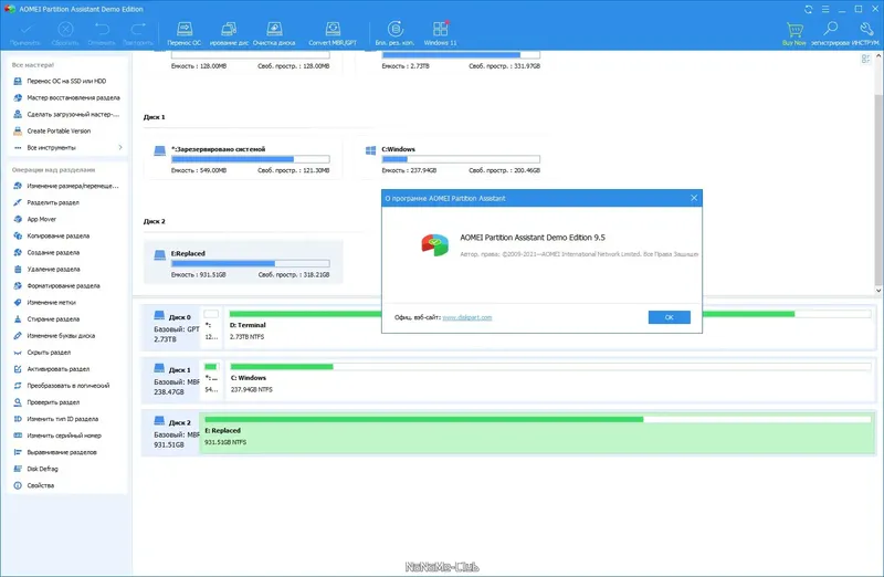 AOMEI Partition Assistant Standard Edition — это бесплатный инструмент для администрирования жестких дисков, который обеспечивает широкий спектр функций для работы с разделами. Программа позволяет легко расширять, уменьшать, перемещать, объединять и разделять разделы, а также создавать, форматировать и удалять их. Благодаря возможности изменения размера раздела простым перетаскиванием мышки, пользователи получают максимум удобства при выполнении операций. Кроме того, программа умеет конвертировать файловые системы из FAT в NTFS и затереть важные данные, что обеспечивает высокий уровень безопасности при управлении дисками.