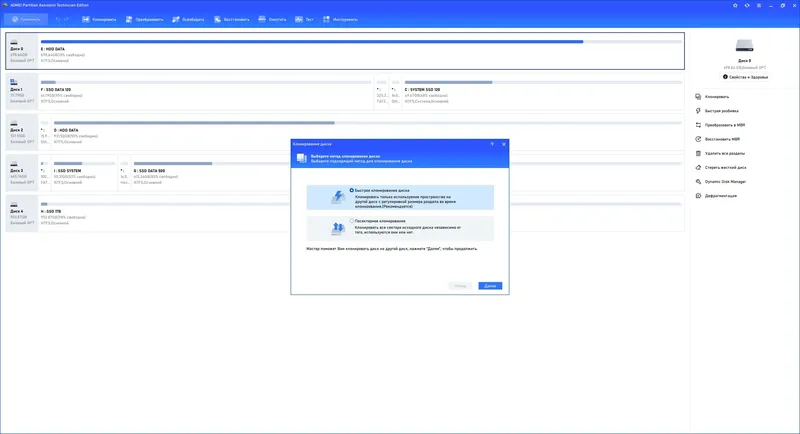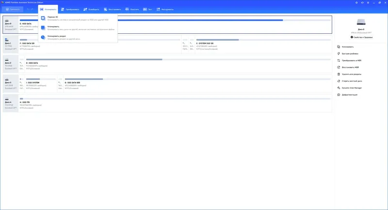 - Клонирование и копирование разделов для миграции системы или резервного копирования;