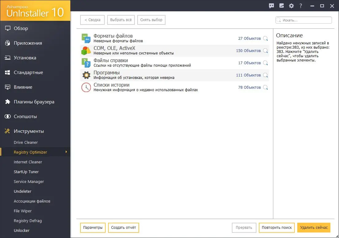Ashampoo UnInstaller — это продвинутый деинсталлятор, разработанный для повышения производительности и стабильности системы. Программа отлично справляется с удалением программных продуктов, оставляющих после себя множество остаточных файлов и записей в реестре. Она использует уникальные методы отслеживания и анализа изменений, что позволяет эффективно удалять даже те приложения, которые были установлены без использования стандартных средств Windows. Помимо основной функции, утилита помогает избавиться от дублирующихся и временных файлов, управлять шрифтами и очищать браузеры от вредоносных расширений, обеспечивая быстрый и безопасный рабочий процесс. Встроенные инструменты позволяют создавать снэпшоты системы, сравнивать состояния и получать подробные отчеты о внесенных изменениях, что особенно полезно для профессиональных пользователей и системных администраторов.