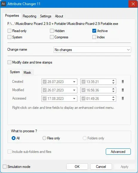 Attribute Changer — это простая и удобная системная утилита, предназначенная для быстрого изменения атрибутов файлов и папок. Она интегрируется в проводник Windows, позволяя управлять свойствами объектов прямо из контекстного меню. Программа подходит для тех, кто нуждается в массовом редактировании метаданных, таких как дата создания, модификации или доступа, а также для установки таких атрибутов, как только для чтения, скрытый, архивный или системный. Благодаря поддержке пакетных операций и возможности генерировать отчеты, Attribute Changer значительно облегчает работу с файлами и папками в любых сценариях использования.