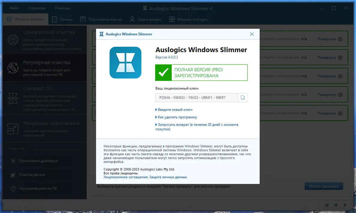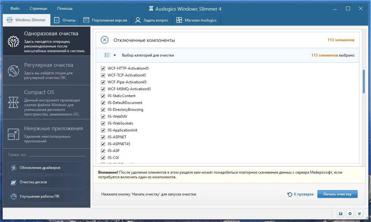Auslogics Windows Slimmer — это универсальный инструмент, который помогает повысить эффективность работы Windows и снизить нагрузку на системные ресурсы. Он отлично подходит для ускорения работы старых ПК и для оптимизации новых устройств. Однако, при неправильном использовании возможна случайная удаление важных компонентов, что требует аккуратности и внимательности.