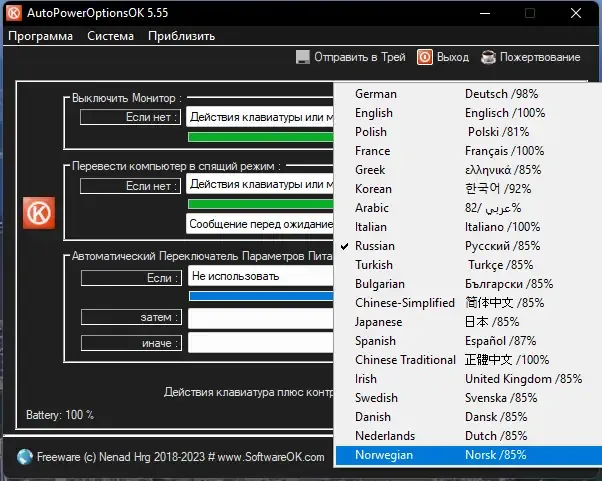 Для начала работы с программой достаточно запустить ее, после чего в системном трее появится иконка утилиты. В настройках можно выбрать желаемые параметры для выключения монитора, перехода в режим сна или переключения планов питания. Все настройки можно задать на определенный интервал времени, что позволяет автоматизировать управление питанием без постоянного участия пользователя. Интерфейс интуитивно понятен, что делает использование программы простым даже для новичков.