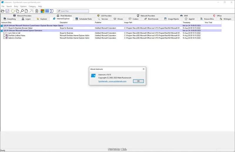 AutoRuns — это бесплатная программа, разработанная компанией Sysinternals, позднее приобретённой Microsoft, предназначенная для детального анализа автозагрузки. Она отображает все запускные объекты, включая программы, драйверы, службы, расширения оболочки и модули поддержки обозревателя. Эта утилита подходит как для диагностики, так и для оптимизации работы системы, особенно актуально для пользователей Windows 11 и Windows 10, стремящихся повысить производительность и безопасность системы. Скачать AutoRuns можно на официальной странице разработчика, что гарантирует получение последней версии программы и совместимость с различными версиями Windows.
