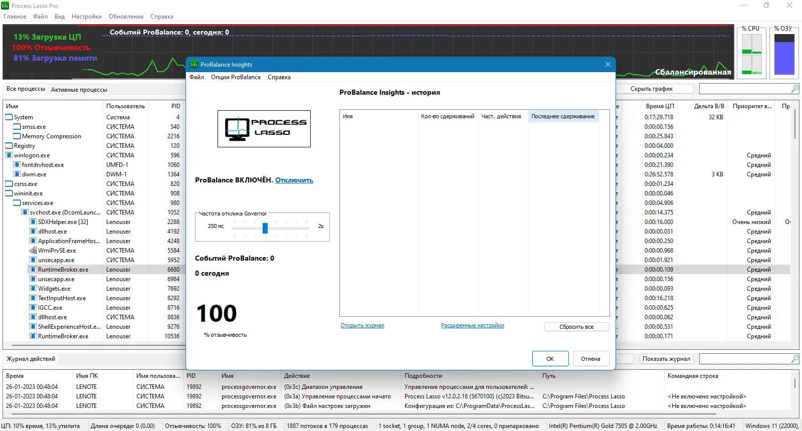 Технология ProBalance позволяет эффективно управлять ресурсами и поддерживать стабильность системы даже при высокой нагрузке.