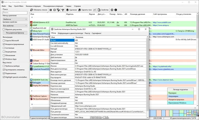 Bulk Crap Uninstaller — это мощный инструмент для эффективной деинсталляции программ и удаления остатков файлов и записей в реестре. Он позволяет полностью избавиться от ненужных приложений, освобождая дисковое пространство и повышая производительность системы. Программа подходит как для новичков, так и для опытных пользователей, предлагая удобный интерфейс и расширенные функции для профессиональной очистки системы.