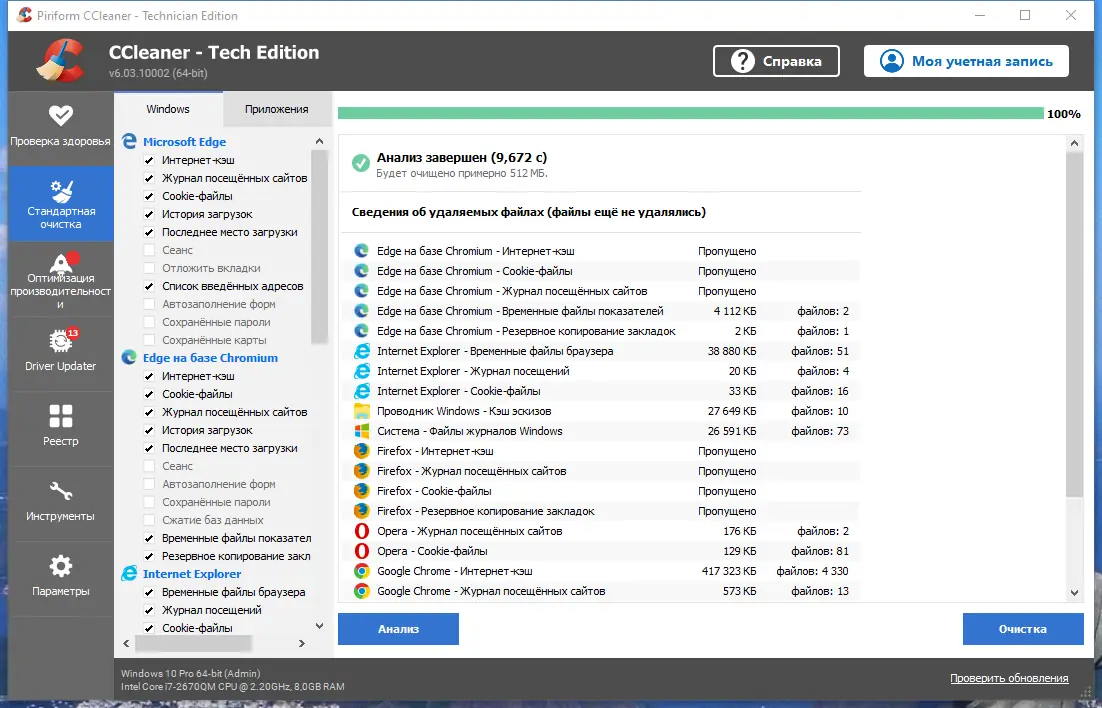 Использование CCleaner позволяет значительно повысить производительность и безопасность системы, освобождая место на диске и устраняя потенциальные источники ошибок.