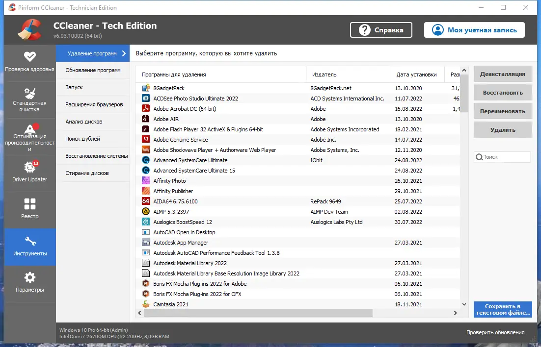 CCleaner — это популярная бесплатная программа для оптимизации работы системы, которая помогает очистить компьютер от ненужных файлов, временных данных и следов интернет-серфинга. Она поддерживает работу с различными браузерами и сторонними приложениями, а также включает инструменты для очистки реестра Windows. Благодаря простоте использования и высокой эффективности, CCleaner считается одним из лучших решений для поддержания чистоты и скорости системы.