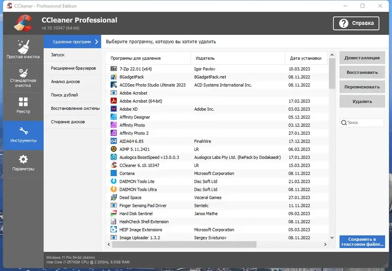 Использование CCleaner значительно ускоряет работу системы и освобождает место на жестком диске.