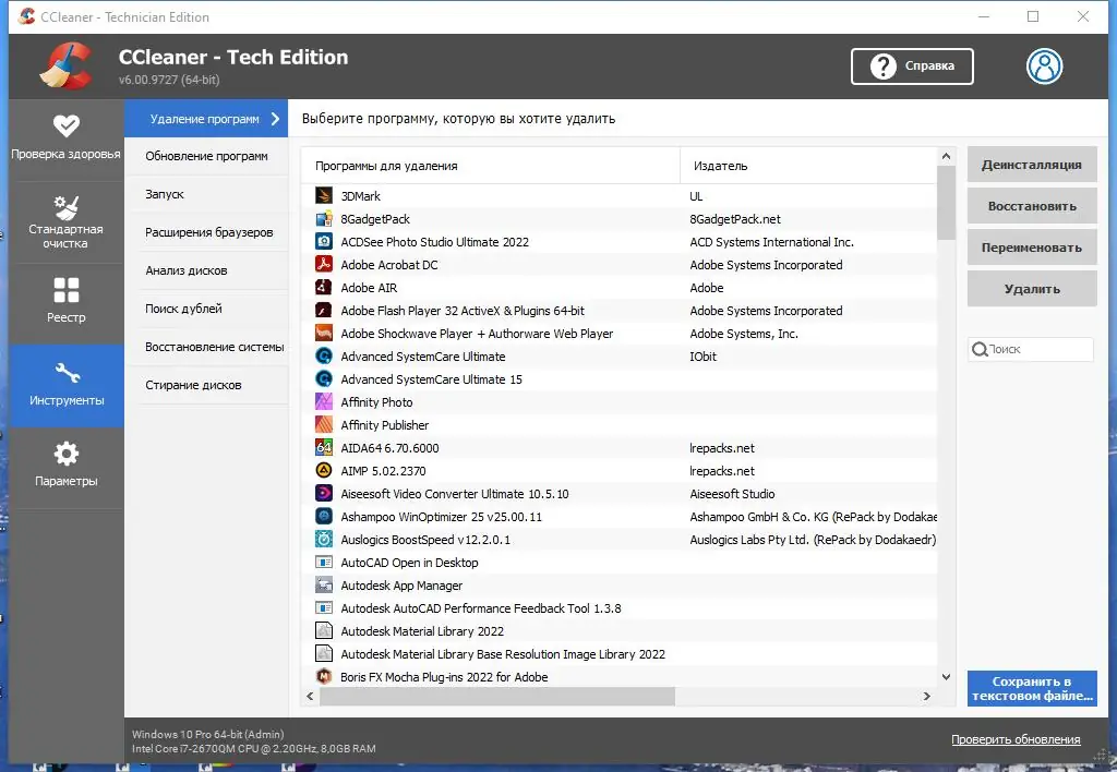 CCleaner — это популярная системная утилита, предназначенная для очистки мусора и оптимизации работы операционной системы Windows. Она поддерживает очистку разнообразных компонентов, включая браузеры, реестр и сторонние программы, такие как Firefox, Opera, Media Player и многие другие. Благодаря простому интерфейсу и широким возможностям, программа идеально подходит как для новичков, так и для опытных пользователей, желающих поддерживать свой ПК в отличном состоянии.