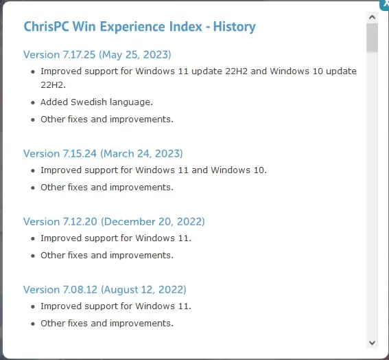 ChrisPC Win Experience Index — это бесплатная утилита, позволяющая быстро и легко оценить производительность компьютера в системе Windows. Она расширяет стандартный индекс Windows, предоставляя более подробную информацию о работе процессора, памяти, видеокарты и жесткого диска. Программа отличается простым интерфейсом и высокой скоростью выполнения тестирования, что делает её удобным инструментом для диагностики системы без необходимости сложных настроек.